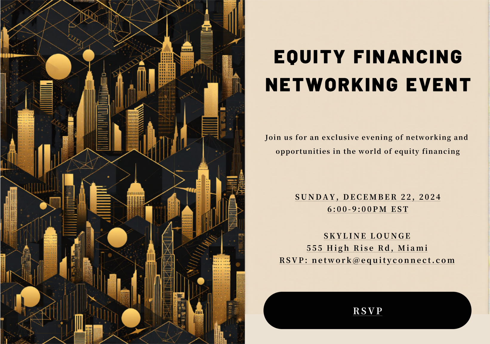 Get creative! Design your perfect Equity Financing Networking Event Postcard!