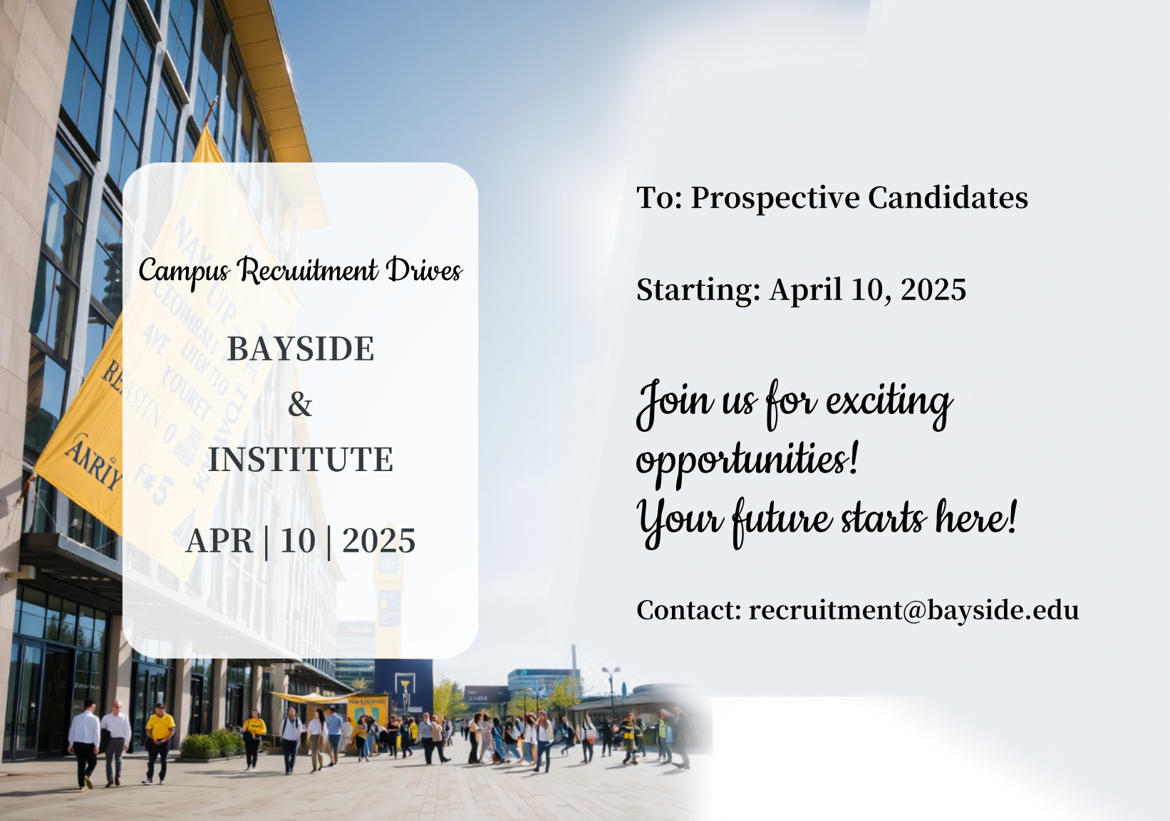 Capture the beauty of design by creating an Upcoming Campus Recruitment Drives Postcard!