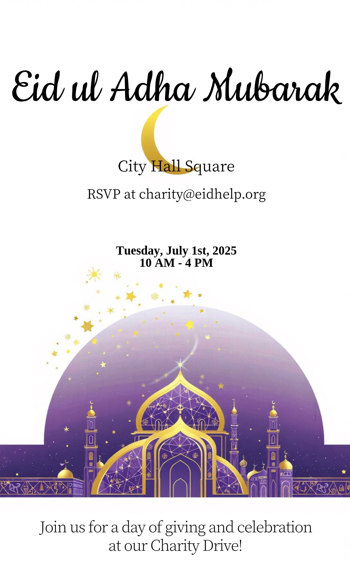Capture the beauty of design by creating an Eid ul Adha Mubarak Charity Invitation!